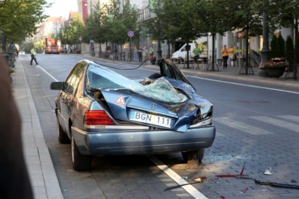 The crushed Mercedes-Benz was actually brought in for the stunt and not for the Benz owner in the clip.