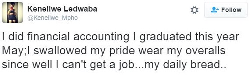 This is Keneilwe Ledwaba, a young graduate who has amazed many people with her recent decision.