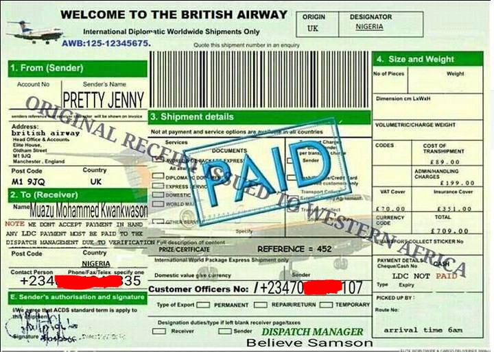 The lady who is based in England decided to acquire some expensive gadgets for the young man such as iPhone and Apple MacBook Pro which she sent to him via British Airways including some cash to sustain himself with.