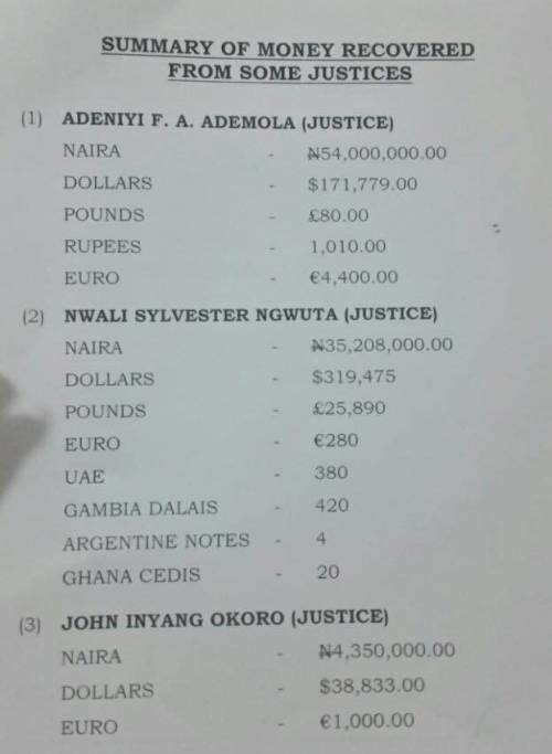 The summary of cash recovered, revealed the DSS, included N93.6million, $530,087, £25,970 and €5,680. There were allegedly recovered from three judges. Other foreign currencies, revealed the DSS, were also recovered in addition to other banking documents, including real estate documents. The DSS, revealed the statement, is already preparing to arraign the judges before a competent court.