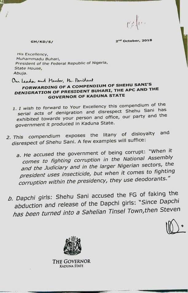 See What El-Rufai Wrote About Shehu Sani That Led To APC Revoking His Ticket - 9jaflaver