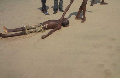 This gory photo surfaced from the corpse recovery of a young man who died during a social engagement at the Elegushi beach in Lagos.