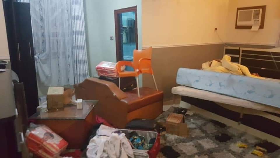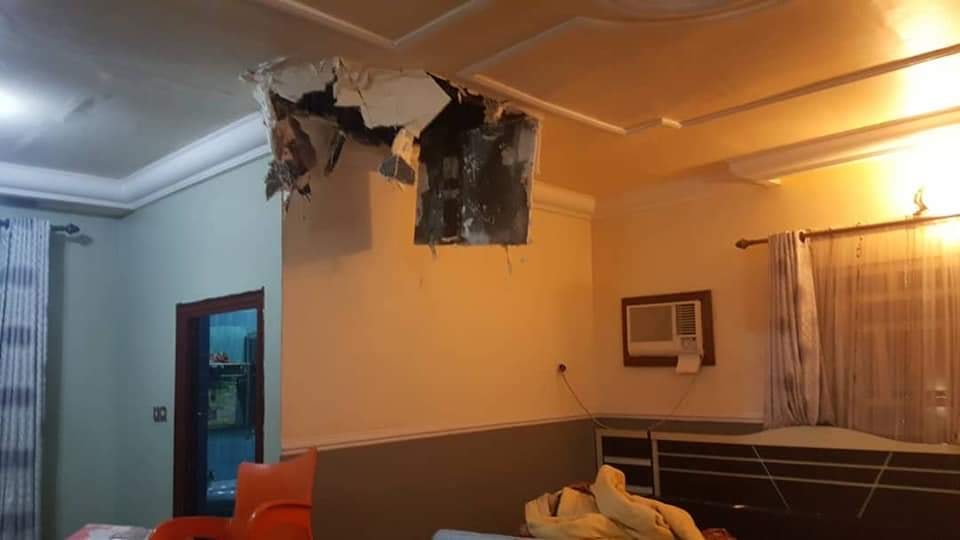 The ceiling in his bedroom was also destroyed as the soldiers searched for him and suspicious items in the palace.