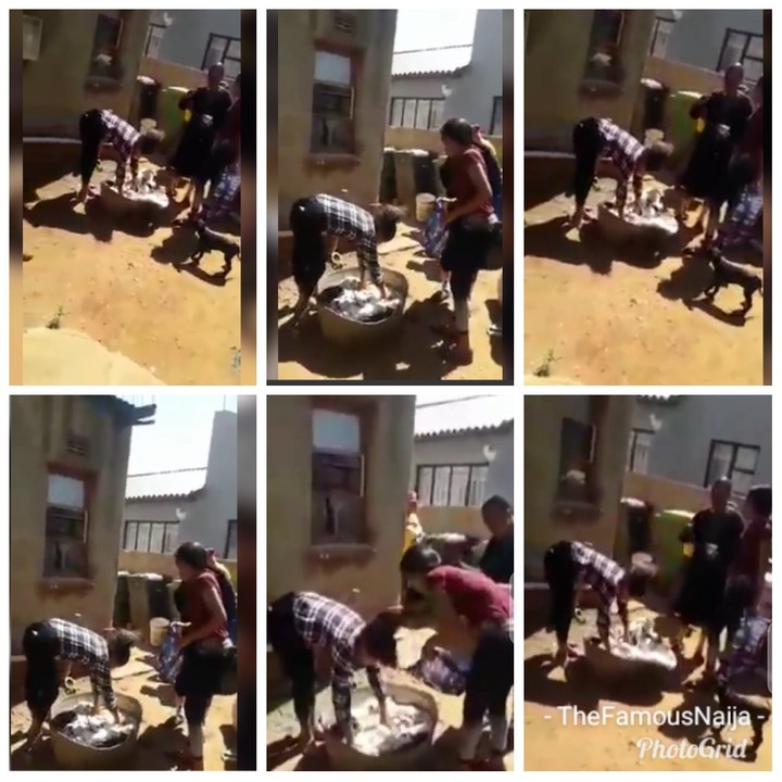 With the help of her friends, she made the side chick to wash the blankets and bed sheets in the house.