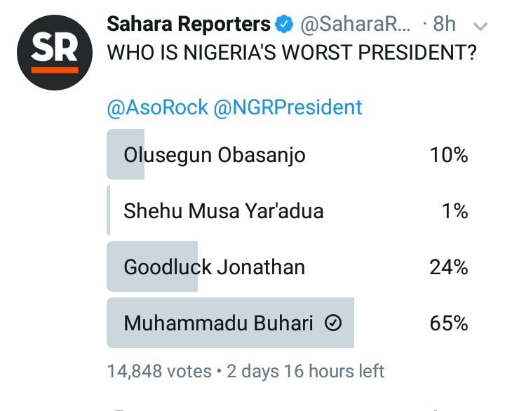 Sahara Reporters organized a poll on Twitter to ask who is the worst president in Nigeria.