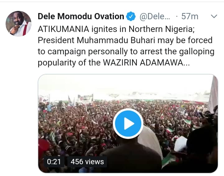 Ovation Magazine publisher, Dele Momodu, is of the opinion that Atiku Abubakar, the PDP presidential candidate is getting more popular than President Buhari.
