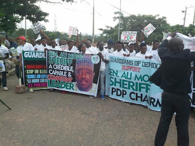 Sen. Ali Modu Sherif storms PDP Headquarters with his supporters to ‘take over power’ (See Photos)