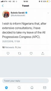Senate President Abubakar Bukola Saraki has announced his exit from the ruling party APC.