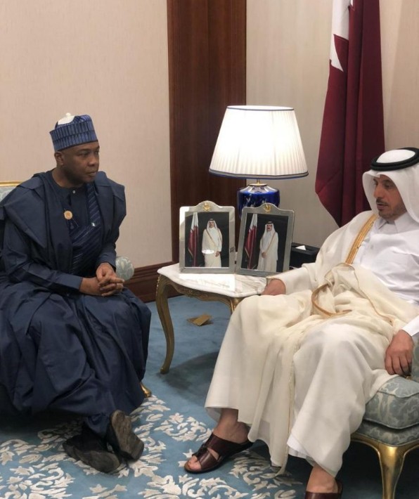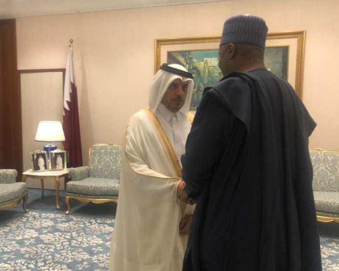 Senate President, Bukola Saraki Meet Prime Minister Of Qatar, Sheikh Abdullah In Doha, Qatar.