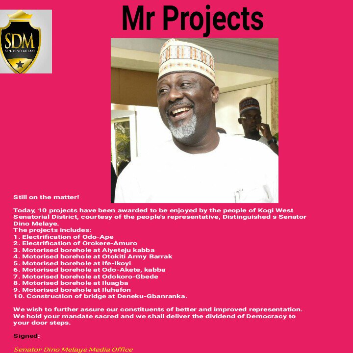 The Senator representing Kogi West, Dino Melaye as awarded 10 New Projects in his district.