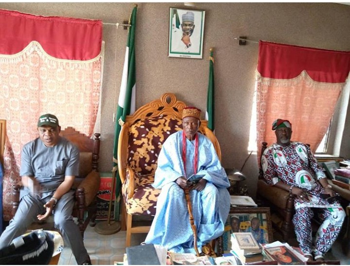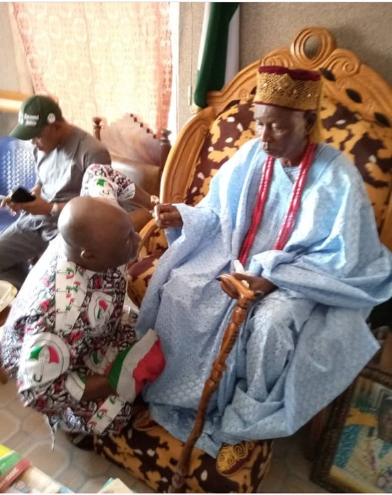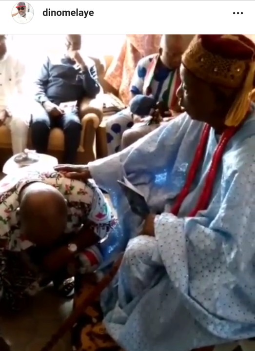 Senator Dino Melaye yet again goes down his kneels this time as he receives Royal blessing from Olubunu of Bunu Kingdom ahead of Kogi state Senatorial elections…