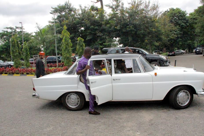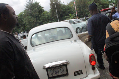 Senator Dino Melaye was spotted driving around in two newly acquired vintage 1958 Model Benz Cars in Abuja with customized plate numbers.