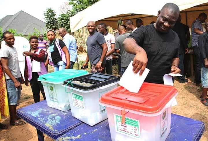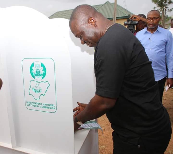 The deputy senate president Sen. prof. Ike Ekweremadu just casted his vote at his polling unit in Aninri local govt, Enugu state.