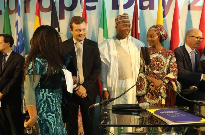 The President of the Senate, Dr. Abubakar Bukola Saraki, and his wife, H.E. Toyin Saraki, attended the European Union Day Celebration at the EUinNigeria House, Abuja.