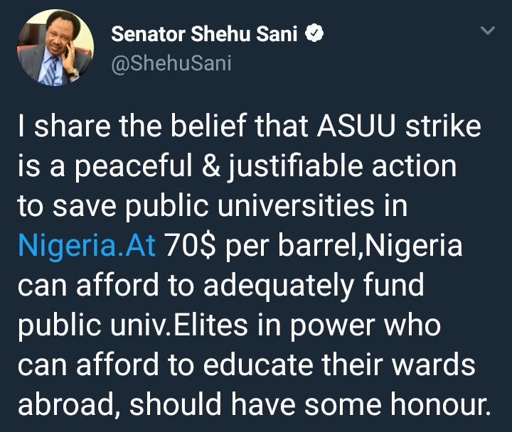 Senator Shehu Sani as reacted to the ASUU indefinite strike that was announced last night.