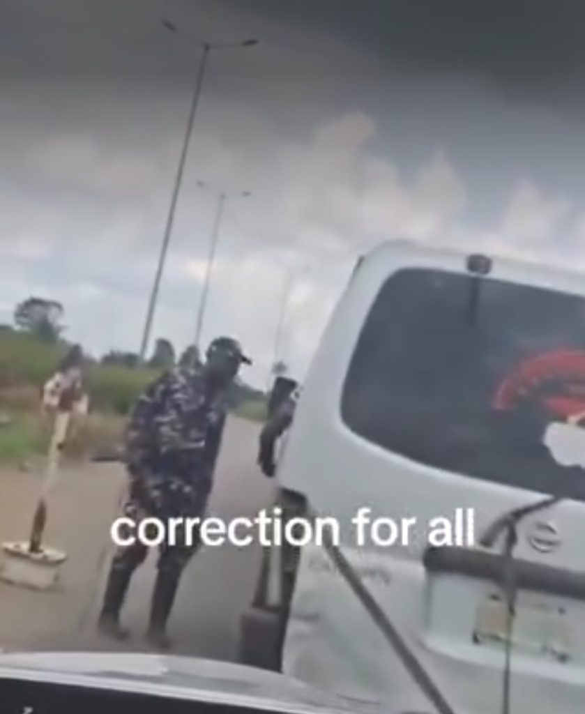 Before scolding him, the senior officer iinstructed his junior colleague to return the money he collected to the bus driver who had been made to park by the side of the road.