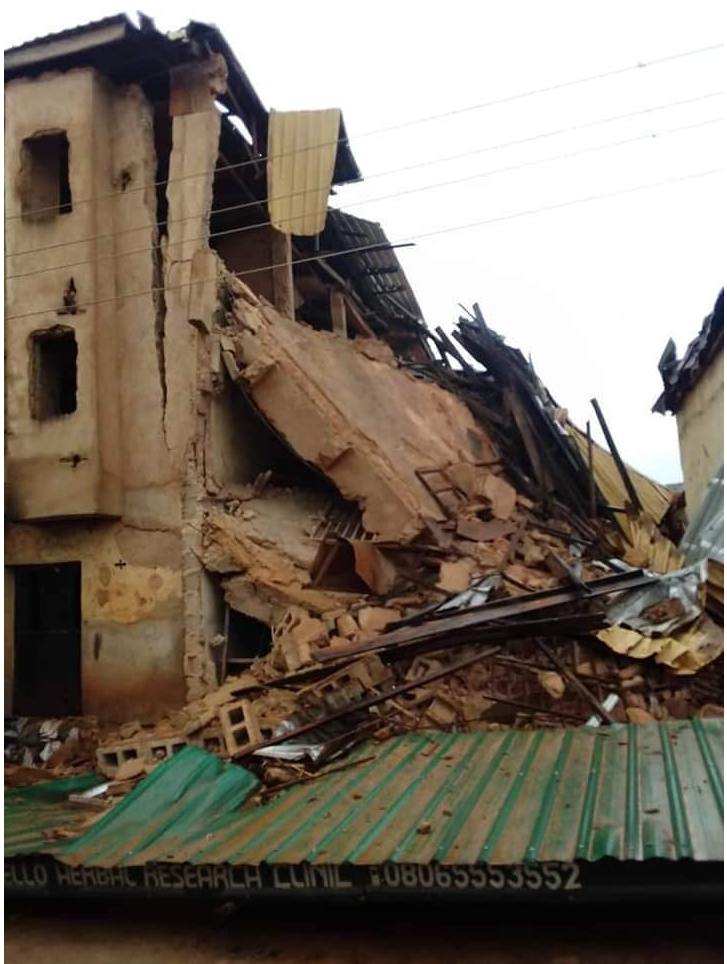 The building said to be owned by a popular herbal doctor, Alhaji Rufai Kabiru, collapsed on Monday evening at about 4pm.