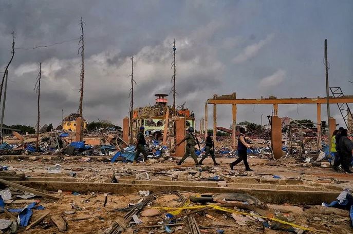 During an assessment of the scene of the explosion on Monday morning alongside his deputy, Obafemi Hamzat, and other top officials, Mr Sanwo-Olu said that the scene of the explosion looks like a ‘war zone’.