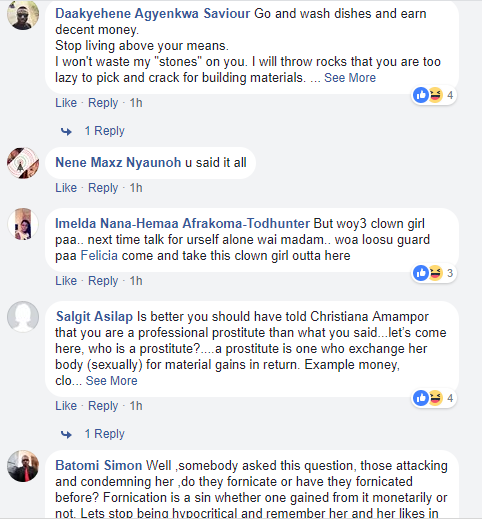Fans didn’t take it lightly with her as they stormed her page to query her once more. They advised her to go get a decent job and stop living above her means cos that’s why she is dependent on a man to foot her bills. While many criticized her response, she still had kind words from some fans who said she spoke the reality of what’s on ground in Ghana.