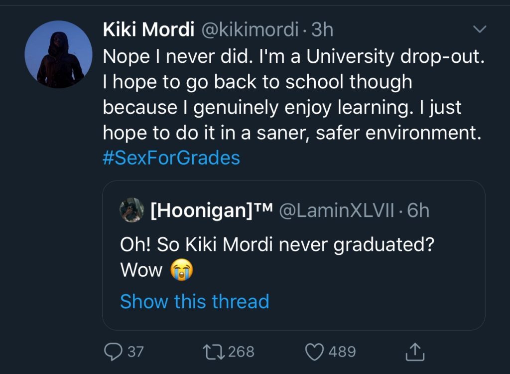 The BBC reporter, Kiki Mordi who exposed the randy lecturers at the University of Ghana and University of Lagos, actually dropped out of school because of sexual harassment. Newsmag.com.ng reports.