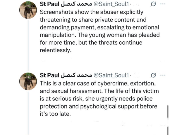 An X user had raised the alarm. He claimed that the suspected blackmailer had reached out to the young lady residing in Umuahia, Abia state via her Facebook account with claims that he has her private images and will release them if she doesn’t pay a certain amount of money. The blackmailer had shared photos of some persons he claims the victim knows with threats he will send it to them if she failed to comply. The X user claims that the incident has left the victim suicidal.