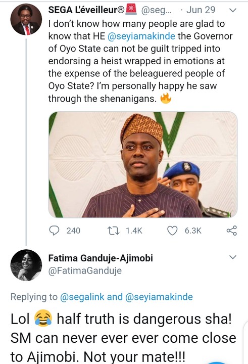 I don’t know how many people are glad to know that HE @seyiamakinde the Governor of Oyo State can not be guilt tripped into endorsing a heist wrapped in emotions at the expense of the beleaguered people of Oyo State? I’m personally happy he saw through the shenanigans
