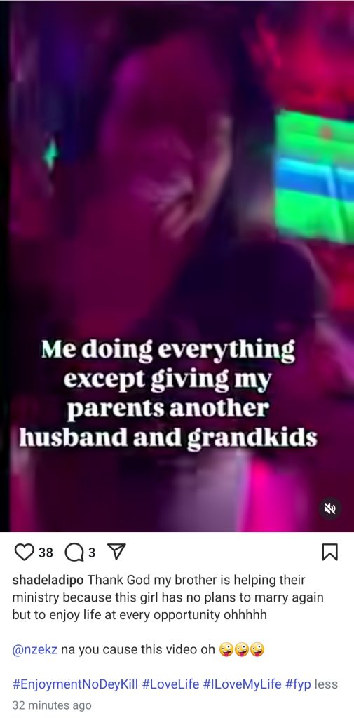 She added: “Thank God my brother is helping their ministry because this girl has no plans to marry again but to enjoy life at every opportunity ohhhh.”