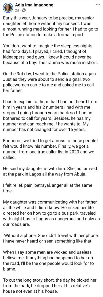 “She has learned the hard way” – Mother whose teenage daughter secretly left Abuja in search of her deadbeat father in Lagos narrates how the father treated her