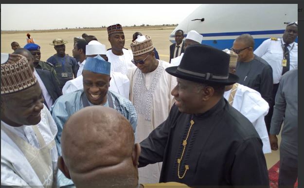 Former President Goodluck Jonathan and President Buhari arrives in Sokoto to commiserate with the family of former President Shehu Shagari.