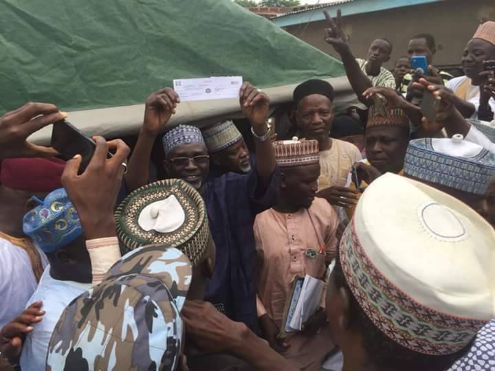 Former Governor of Kano Malam Ibrahim Shekarau CON, with his APC Membership Card collected today Sun, 9/9/18 at his Giginyu Ward, Nasarawa Local Government, Kano State. APC Change.