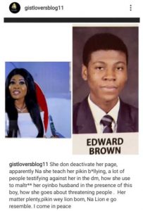 “She was our customer back then in Ikoyi. A very use less lady and very fetish. A demon is an understatement. Someone who brings native doctor from Togo to prepare charm for her boyfriend turned husband. She’s a Lucifer. Even to eat in her was a problem to me. We were friends back then and after watching her cook with goat urine for her husband, I ran away from her”.