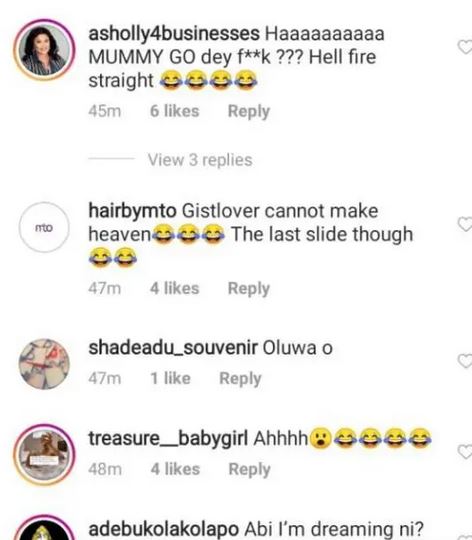 tomorrow we go bring evidence and some of her victim and more details about mummy GO boyfriend . Them Dey bo cardiiii for maami GO ooo,make nobody deceive una for this gram ooo, I come in peace ooo”.