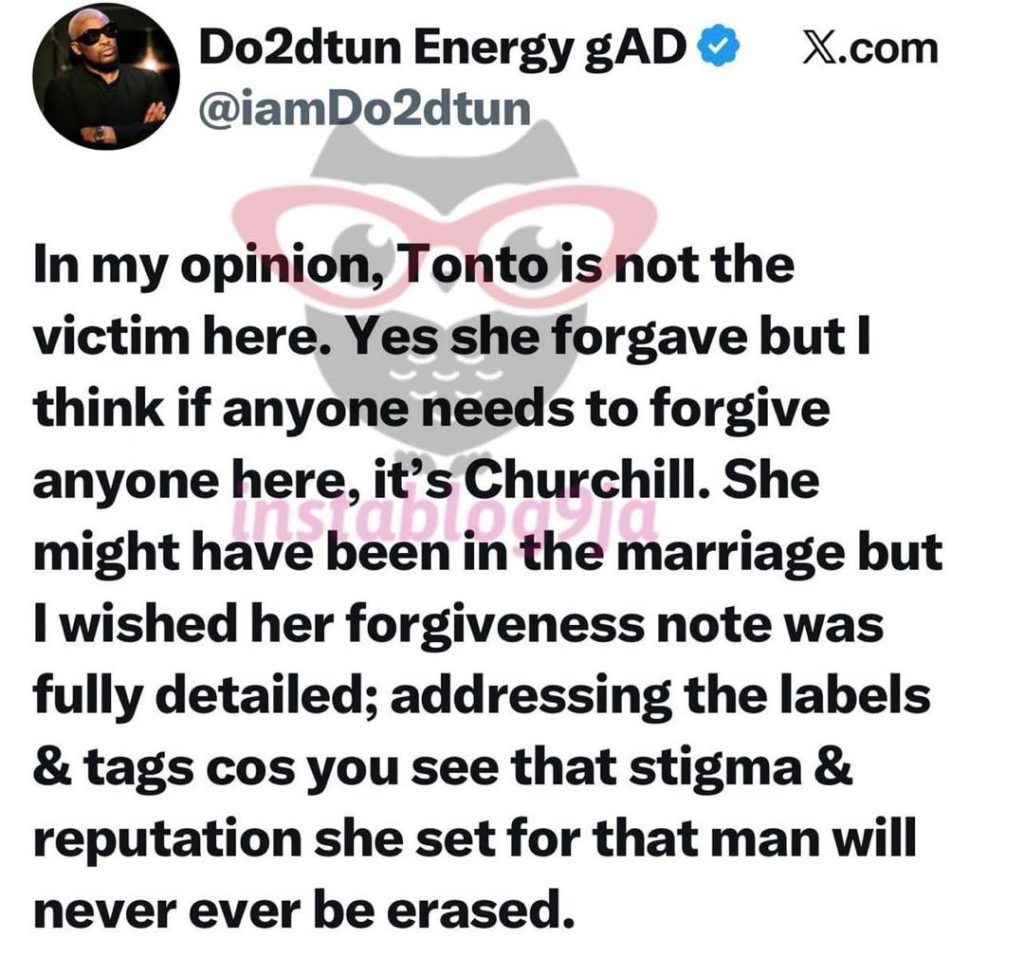 His statement has since sparked intense debate online. While some agreed with Dotun, saying Churchill’s reputation suffered irreversible damage, others defended Tonto, insisting forgiveness doesn’t require public explanations
