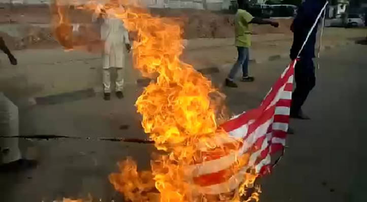 The angry protesters chanted hate songs and slogans such as ‘Death To America,’ as they condemned the US action.