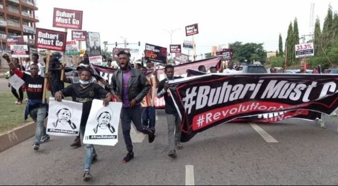 “Buhari must go… free El-Zakzaky… stop injustice,” the protesters chanted as they marched along the streets.