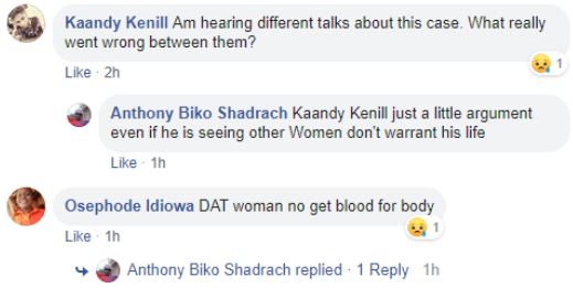 In an exchange with a follower, Anthony added: “Just a little argument even if he is seeing other Women don’t warrant his life”