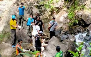 His body was discovered among sharp rocks at the bottom of the waterfall two hours later by emergency services.