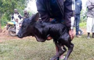 Residents of Nang’anda village in Navakholo, Kakamega county, Kenya were left in shock after a cow gave birth to a calf with two legs.