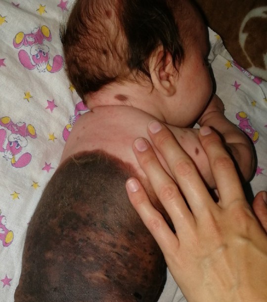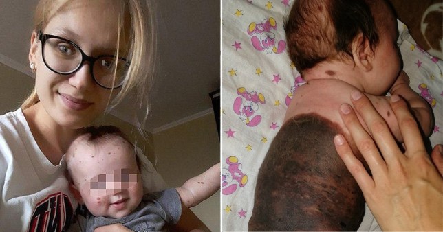 Online trolls told a Russian mother to kill her one-month-old baby because she has a birthmark covering 80% of her body.