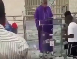 A disturbing video has showed the moment some men suspected to be internet fraudsters sprayed money on a church altar while celebrating a man of God.