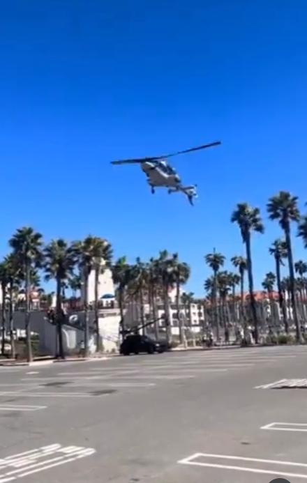 Authorities said emergency crews responded around 2 p.m. following reports of a helicopter crash in a beach parking lot between Twin Dolphins Drive and Beach Boulevard. The aircraft, seen in the footage spinning before hitting the ground, was reportedly linked to the “Cars ’N Copters on the Coast” event scheduled for Sunday.