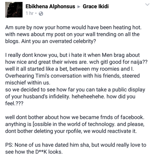 Side chick still disturbing her lover’s wife, only now she claims it was all a prank