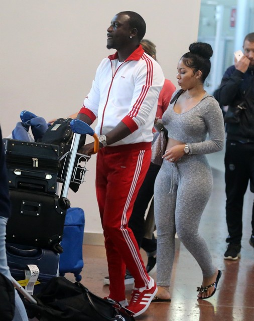 Singer Akon and one of his wives pictured CDG airport in Roissy en France, France.This is Akon’s latest wife. The singer, who practices polygamy, has other wives including Rosina Bruck, a performer, and Tomeka Thiam. He also has multiple girlfriends and has several kids.