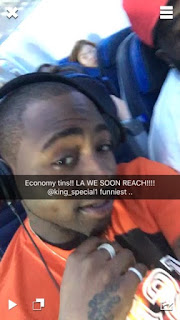 It’s surprising that Davido, the omo baba olowo has lamented his plight after having to fly economy class from Ohio to Los Angeles. He put this up on Snapchat, stating that he hadn’t flown Economy Class is ten years and beside it put the crying emoji.