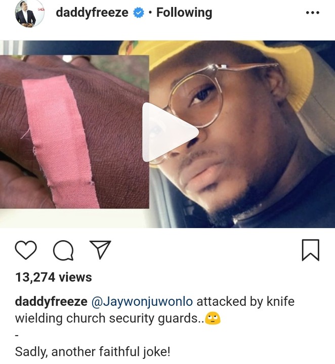 This was shared by Daddy Freeze amidst an audio recording which has Jaywon marrating the ordeal.