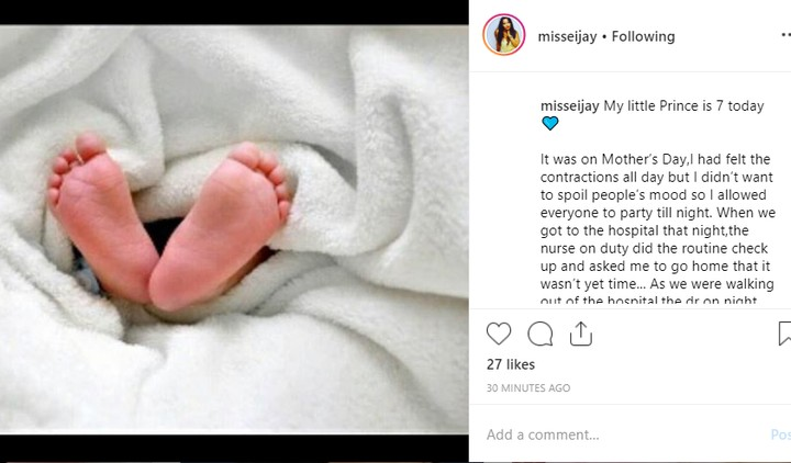 To celebrate their son, Kanyechukwu’s 7th birthday today, Ijeoma has taken to her Instagram page to recount the day of his birth.