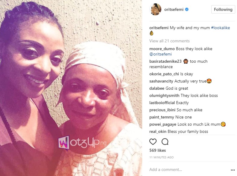 Afrobeat Singer, Oritse Femi took to Instagram to share a picture showing his wife and mum who both look extremely alike.
