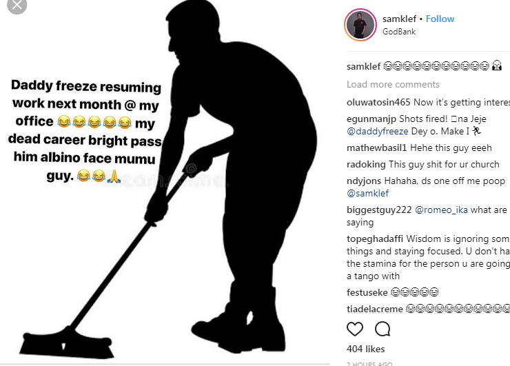 Samklef, who has gotten fed up of Freeze’s antics, stood up to him and said his criticism on churches is getting boring. From there, the exchange got pretty heated up, which later led to Samklef blocking the Freeze on Instagram.