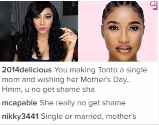 Nigerians think she is shading Tonto, and are telling her to wait for her own karma