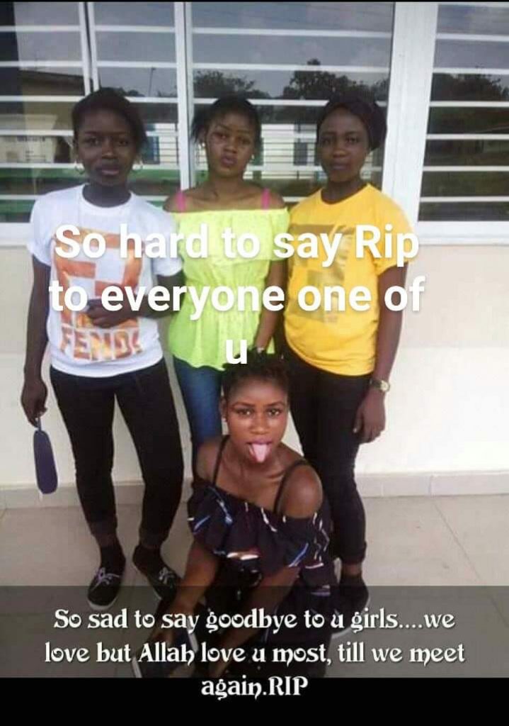She continued “So hard to say Rip to u girls, I never knew d day u attend my sis wedding will b d last day we would see, I really love you and miss u (7 heart at a time) you only went to mosque to serve d almighty Allah for tahjud u were performing ablution to pray ,wen dis avensis car kill 7peopls at a time,one still in coma and notin happen to dis yahoo guys at olorunsogo central mosque Abeokuta .i never believed nt until wen I got to ur school and see thousand of people, still don’t believe wen Dey took us to were d accident happen nt until wen I got to Fmc idi aba abeokuta were I saw u girls dead, some in pieces. We called dis iku sheidih in Islam, may Allah grant u aljana fridauos and console we families dat dis happen to. Bt am sure insha Allah if those yahoo boys use u all for sacrifice, Dey will die in jail bcoz no single drop of blood where d accident happen. Bt Allah knows all. Rest in peace to u all